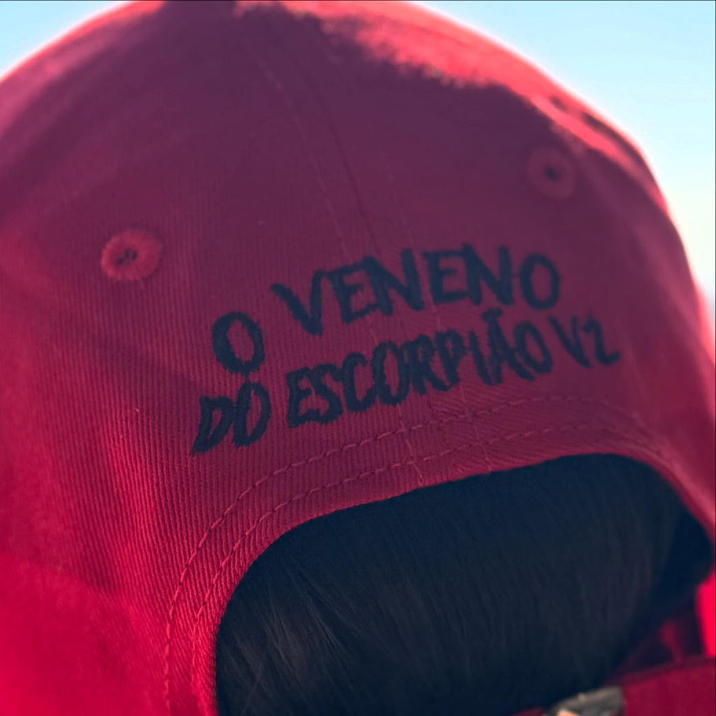 Boné oficial da nova fase do álbum O Veneno do Escorpião. Lançado como parte do merch exclusivo, este modelo traz visual marcante, bordado frontal do escorpião e frase na parte de trás, em duas cores: vermelho e preto.